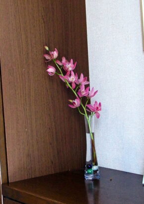 一方、ミニシンビジュウムは、別名テーブルシンビジュウムという名前が付くとおり、従来のシンビジュムに比べて一回り小さく、室内に置いても威圧感のない大きさです。