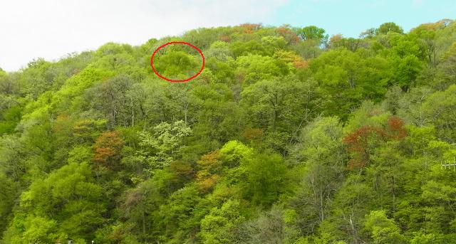 ・赤丸右上の橙色帯びた黄葉のカツラ?も目立ちます。