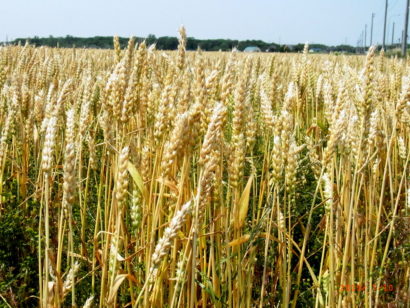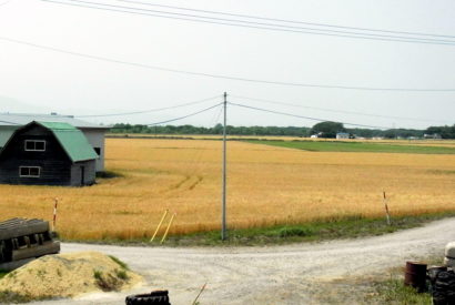 写真は国道337号沿い、札幌市北区に接する石狩市生振(おやふる)の田園地帯。 辺りの景色は秋まき小麦の黄色に染まっています。 収穫は間近で7月下旬。