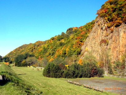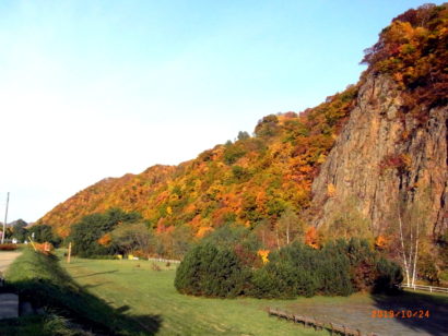 今投稿のテーマは、2019年(令和元年)の紅葉の見頃はいつだったか?です。 10月上旬〜11月中旬まで同じ場所の写真を毎日(出来るだけ)撮って、それを確認するのです。 場所は豊平川沿いの山肌で、南区の国道230号の石山大橋を通り越して白川に抜ける道路(石山線)を少し入ったところ。